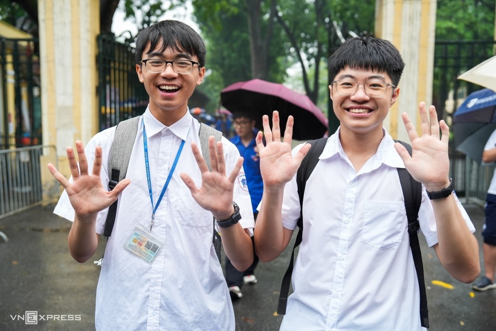 Thí sinh tại điểm thi trường THPT Chu Văn An, quận Tây Hồ, Hà Nội, sau khi hoàn thành môn Toán trong kỳ thi vào lớp 10, ngày 9-6-2024. Ảnh:Tùng Đinh