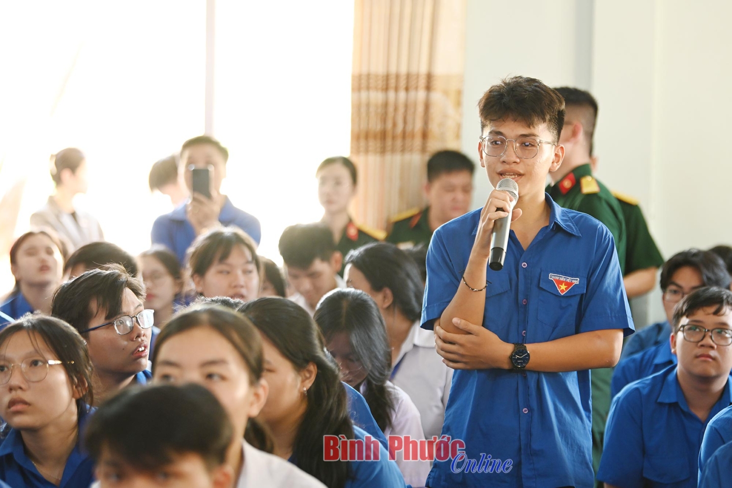 Em Trần Hà Y Bình, lớp 12A2, Trường THPT Hùng Vương, cho biết: Buổi tuyên truyền và hướng nghiệp tuyển sinh đã giúp em có nhiều kiến thức hơn về nhóm ngành quân đội và quân y. Em cũng có sự quan tâm nhất định đến nhóm ngành công an, quân sự nên em thấy buổi tư vấn rất ý nghĩa.