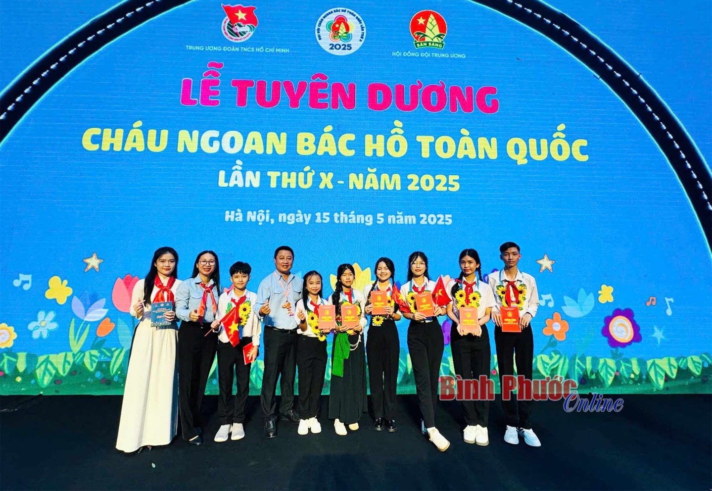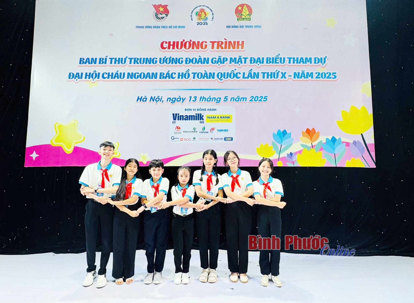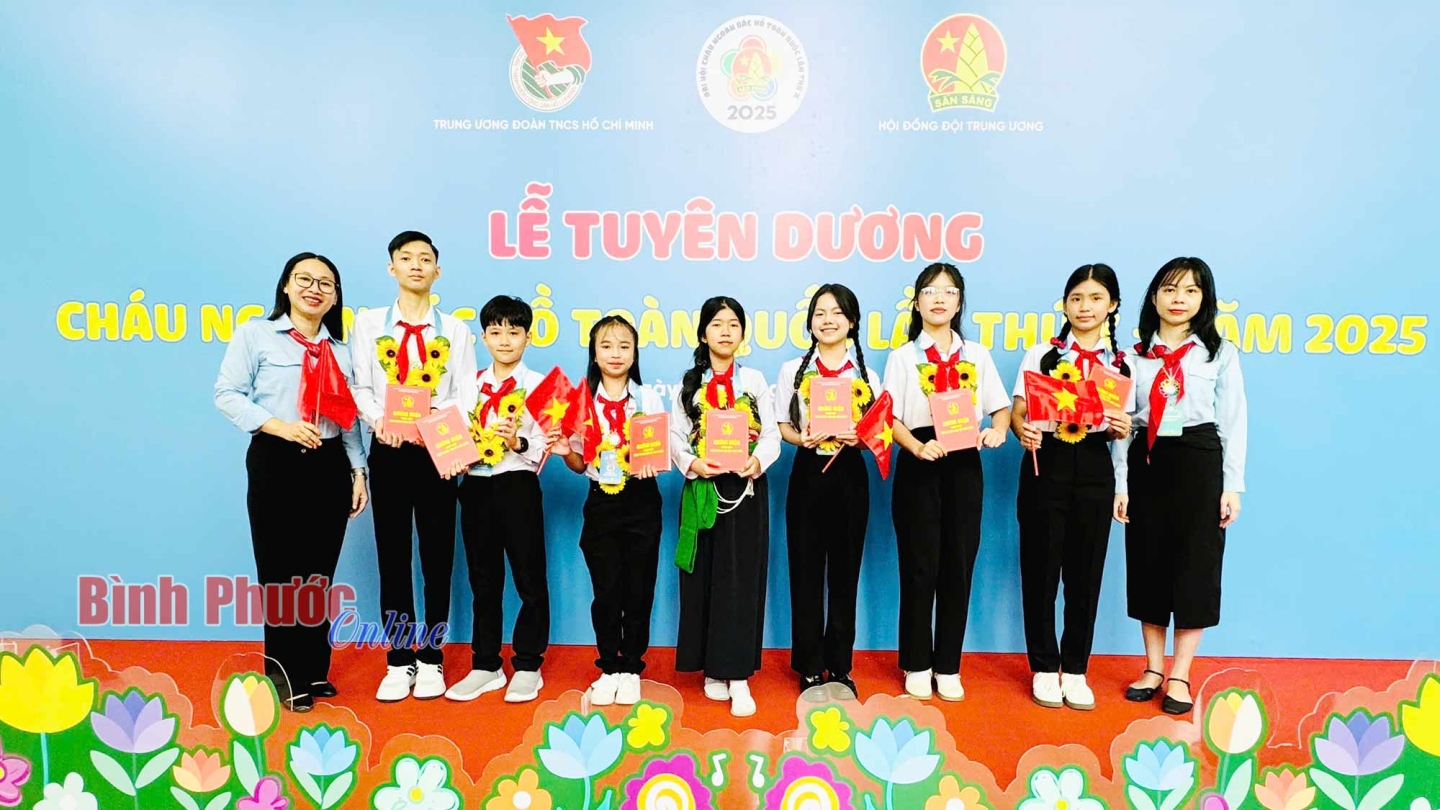 Tỉnh Bình Phước có 7 đội viên ưu tú được tuyên dương tại đại hội gồm: Nguyễn Ngân Khánh, lớp 9A1, Liên đội PTDTNT THCS Lộc Ninh (huyện Lộc Ninh); Nguyễn Hồng Dương, lớp 9A, Liên đội TH&THCS Minh Long (thị xã Chơn Thành); Lê Ngọc Bảo Linh, lớp 9/1, Liên đội TH-THCS Thanh Lương (thị xã Bình Long); Phạm Lê Ngọc Hân, lớp 5/2, Liên đội Tiểu học An Lộc B (thị xã Bình Long); Trịnh Ngọc Duy Anh, lớp 7A1, Liên đội THCS Tân Tiến (huyện Đồng Phú); Phạm Thị Bảo Ngọc, lớp 7/9, Liên đội THCS Tân Xuân (thành phố Đồng Xoài); Vũ Đỗ Tùng Vân, lớp 7/2, Liên đội THCS Tân Phú (thành phố Đồng Xoài). Các em là những bông hoa rực rỡ trong vườn hoa thi đua nghìn việc tốt, không chỉ nổi bật trong học tập, mà còn tỏa sáng qua các phong trào văn hóa, văn nghệ, thể thao, sáng tạo khoa học kỹ thuật, cũng như tích cực tham gia các hoạt động đội, tình nguyện vì cộng đồng.