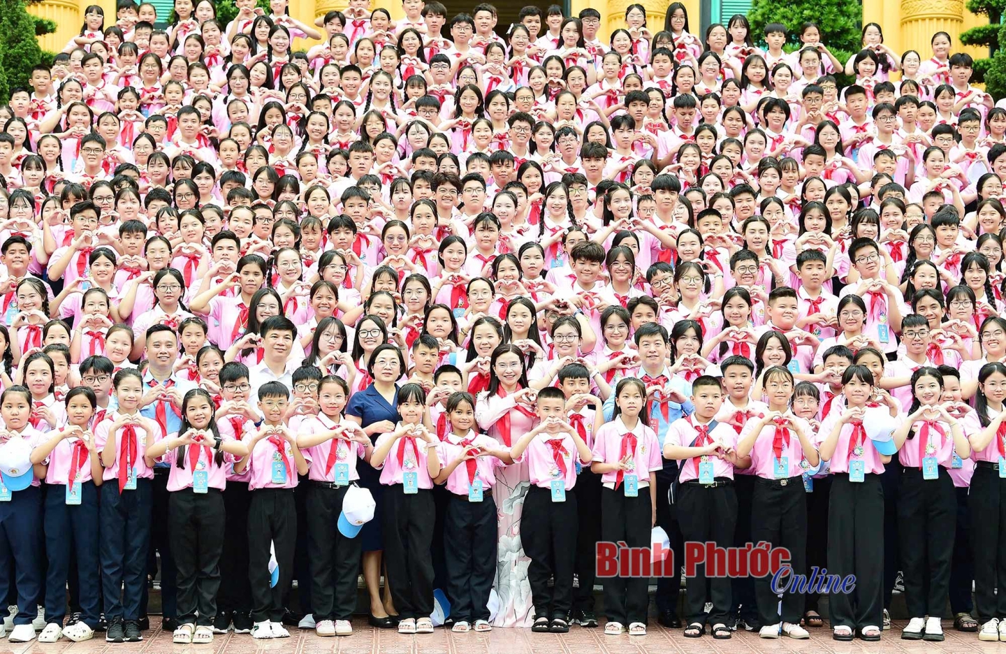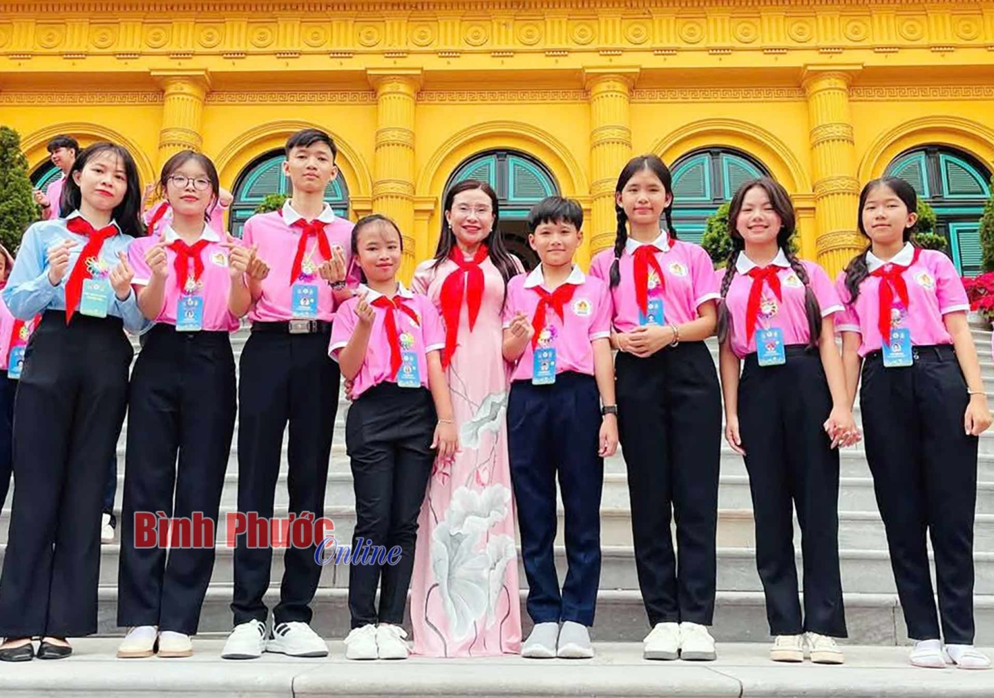Đoàn đại biểu thiếu nhi Bình Phước chụp hình tại Phủ Chủ tịch cùng đoàn đại biểu tham gia Đại hội cháu ngoan Bác Hồ toàn quốc lần X