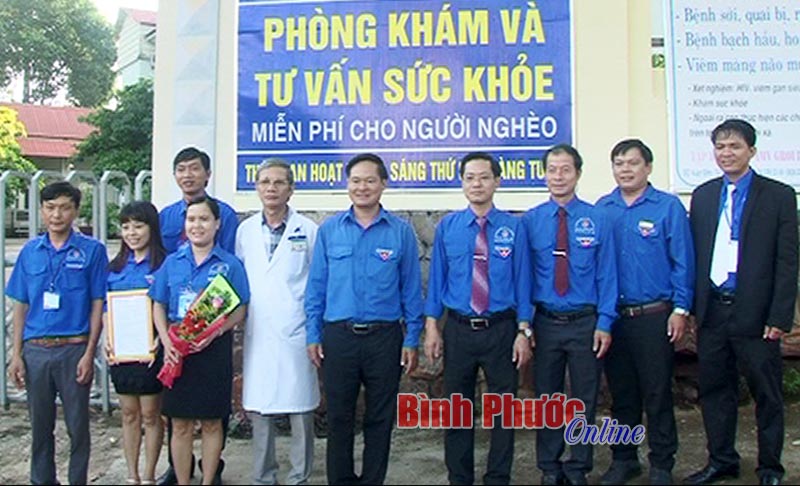 Lãnh đạo Tỉnh đoàn, thị xã Bình Long chụp hình lưu niệm với đội khám bệnh miễn phí cho người nghèo