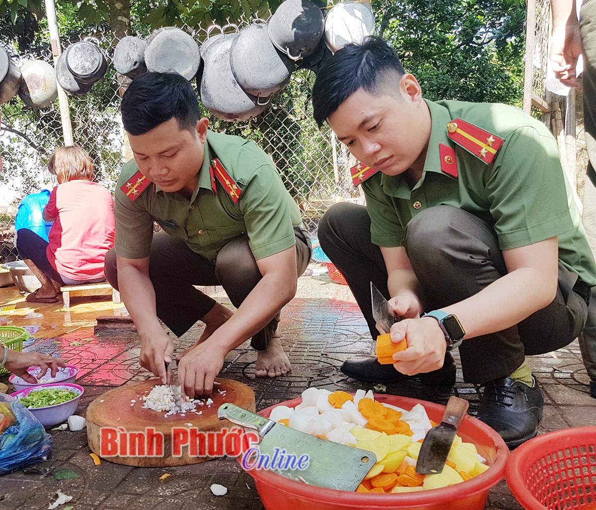 Các chiến sĩ, cán bộ Chi đoàn Phòng Tổ chức cán bộ Công an tỉnh cùng chung tay nhau nấu một bữa ăn phục vụ cho những hoàn cảnh Cơ sở Mái Ấm Bà Rá