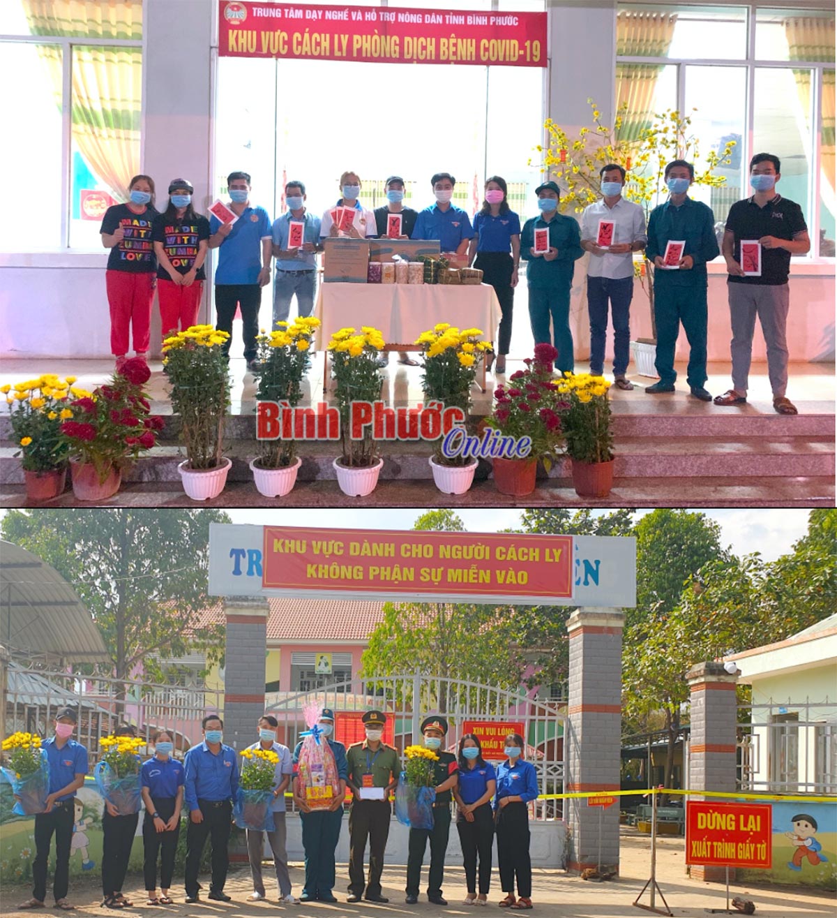 Ngày 8-2, Bí thư Tỉnh đoàn Trần Quốc Duy đã cùng các nhà hảo tâm là doanh nghiệp trong tỉnh thăm, tặng quà tết cho 2 khu cách ly tập trung tại huyện Lộc Ninh và thành phố Đồng Xoài. Qua đó động viên, chúc tết các lực lượng trực chiến, người cách ly; gửi hàng chục bức thư pháp chúc xuân do bà Lê Kim Hồng, Tổng thư ký Quỹ Hòa bình và Phát triển TP. Hồ Chí Minh viết tặng các khu cách ly.
