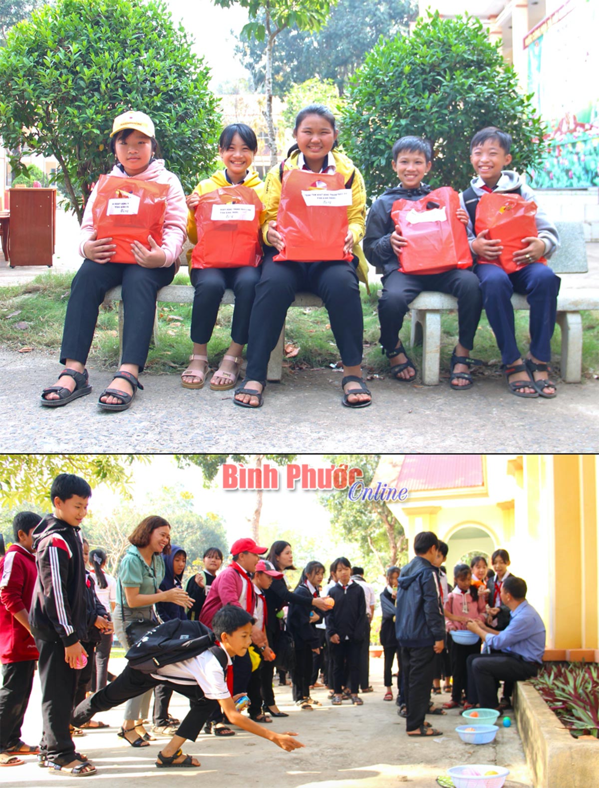 Trước đó, ngày 21-1, Tỉnh đoàn Bình Phước đã tổ chức “Xuân ấm áp - Tết yêu thương” ở huyện Bù Đốp. Tại đây, hàng trăm học sinh đã tham gia nhiều trò chơi dân gian do Trung tâm Hoạt động thanh thiếu nhi tỉnh tổ chức, đọc sách lưu động cùng Thư viện tỉnh; 50 phần quà tết (400 ngàn đồng/phần) do các doanh nghiệp hỗ trợ đã trao tặng học sinh vượt khó của Trường THCS Tân Thành; 10 suất học bổng Vừ A Dính (1 triệu đồng/suất) tặng học sinh ở địa phương.
