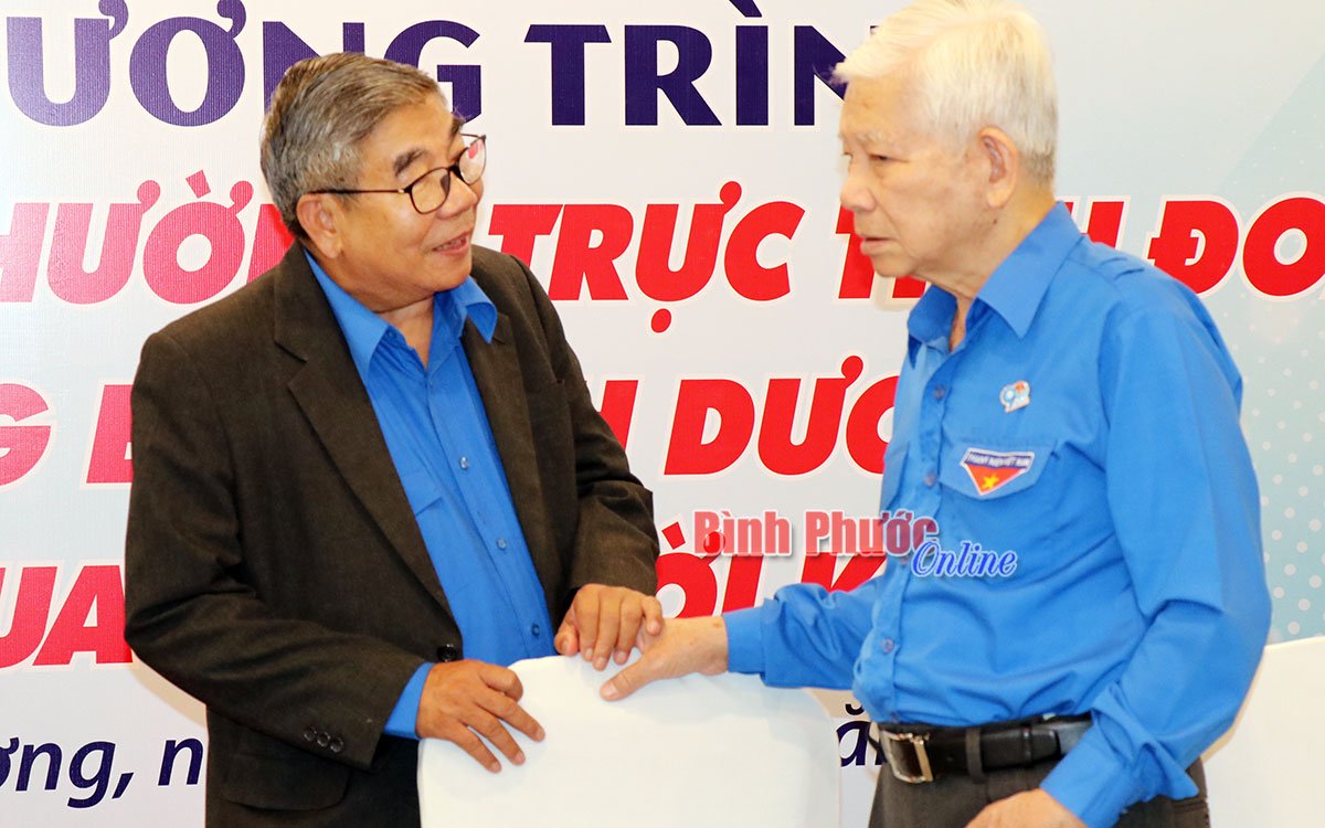 Ủy viên Trung ương Đảng, Bí thư Tỉnh ủy, Trưởng đoàn đại biểu Quốc hội tỉnh Bình Phước Nguyễn Văn Lợi, nguyên Bí thư Tỉnh đoàn Sông Bé và nguyên Chủ tịch UBND tỉnh Bình Dương, nguyên Bí thư Tỉnh đoàn tỉnh Sông Bé Hồ Minh Phương gặp gỡ và ôn lại kỷ niệm những ngày còn là cán bộ đoàn