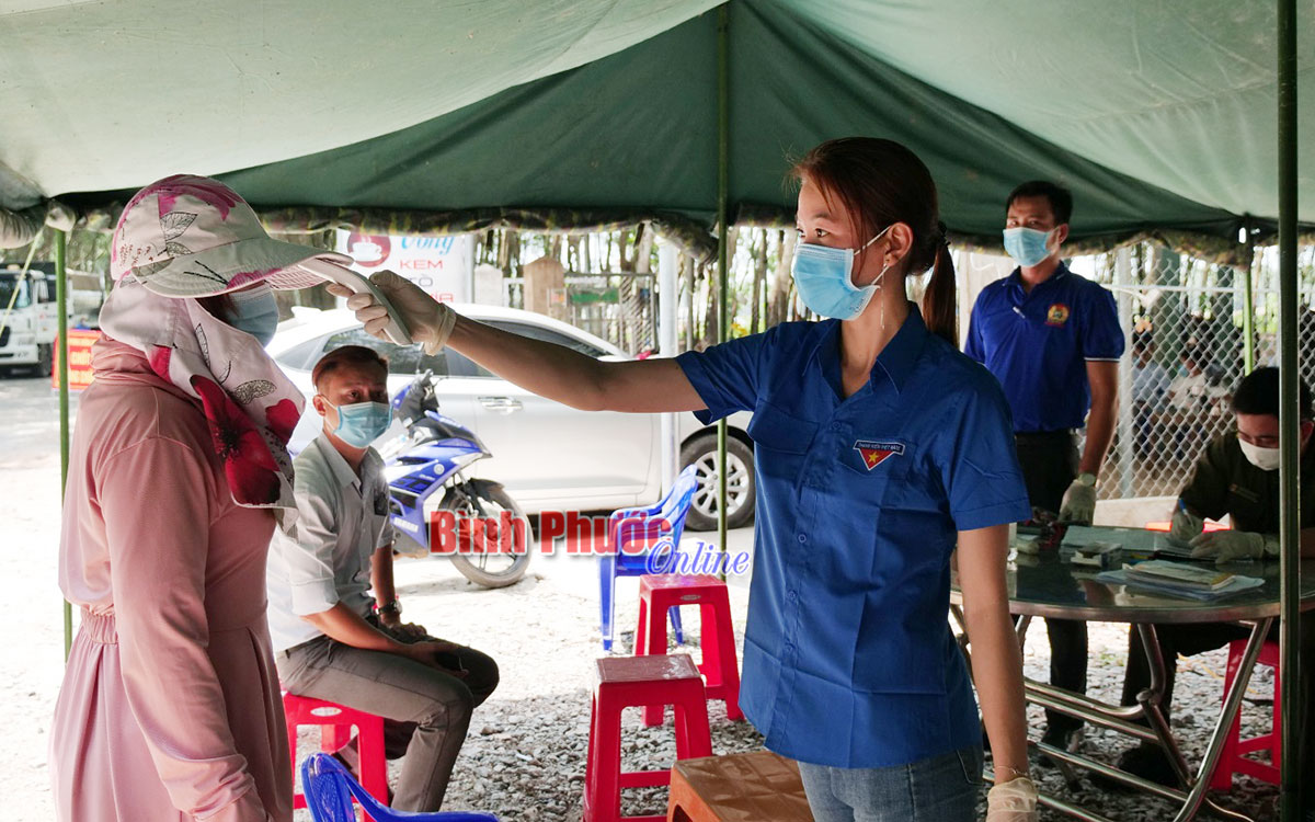 Ngày 1-6, huyện Chơn Thành kích hoạt thêm 3 chốt kiểm soát dịch Covid-19 và mỗi chốt có ít nhất 2 đoàn viên thanh niên hỗ trợ người dân khai báo y tế, đo thân nhiệt