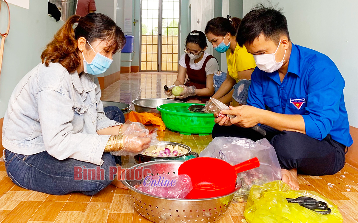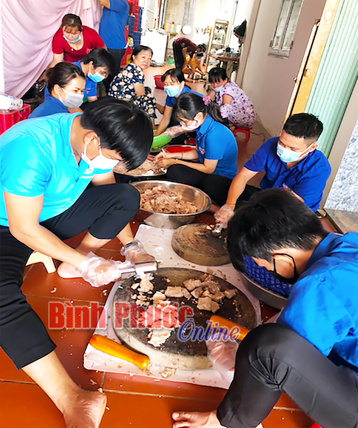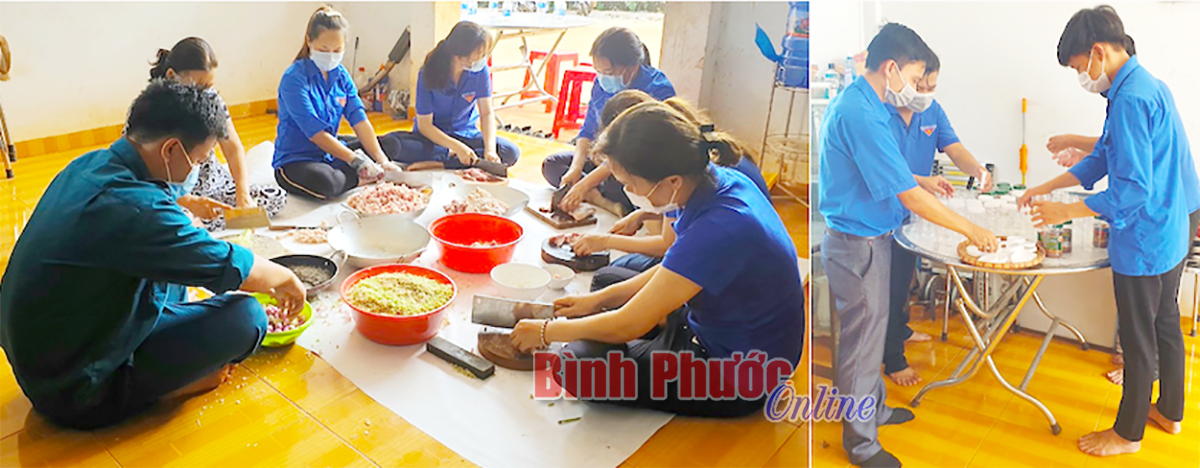 Các cơ sở đoàn trong toàn huyện Hớn Quản đã nhanh chóng vào cuộc, chung tay làm hàng trăm hũ mắm ruốc xào thịt gửi cho người dân ở các khu cách ly tại Bắc Giang
