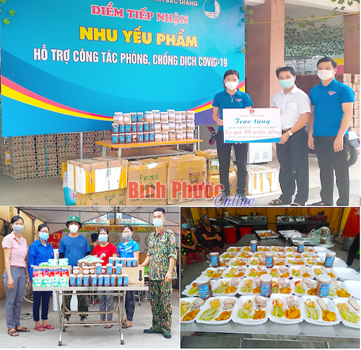 “Dù đang “căng mình” chống dịch nhưng trong những ngày gần đây, ở 6 địa phương tại Bình Phước (TP. Đồng Xoài, TX. Bình Long, các huyện: Hớn Quản, Lộc Ninh, Bù Đăng, Phú Riềng), nhiều bạn trẻ đã tìm cách “tiếp tế” người dân tại một số khu cách ly tập trung ở Bắc Giang bằng việc tự tay làm các món ăn đầy thông điệp yêu thương”, anh Trần Quốc Duy - Bí thư Tỉnh đoàn Bình Phước cho biết.