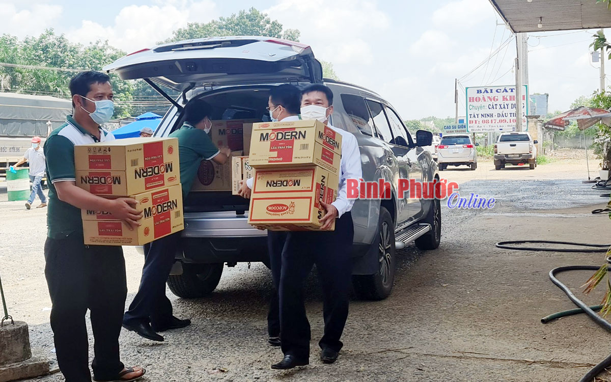 Đại diện Ban chấp hành Công Đoàn, Chi đoàn Vietcombank và Chi đoàn BPTV trao quà tại chốt kiểm soát dịch Covid-19 ĐT.741, huyện Đồng Phú