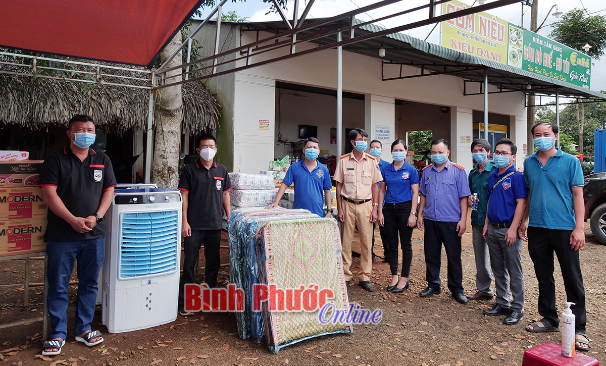 Đây là kinh phí do các chi đoàn vận động đoàn viên thanh niên và các mạnh thường quân đóng góp. Trong đó, Công ty TNHH MTV Toàn Thành Phát (TP. Đồng Xoài) tặng 2 máy làm mát; tiệm bánh Abi House bán bánh gây quỹ và tặng 100 bánh ngọt; cô Hà tiểu thương chợ Đồng Xoài tặng 100 bánh chưng và Câu lạc bộ Pickup Bình Phước hỗ trợ 2 chuyến xe chở nhu yếu phẩm.