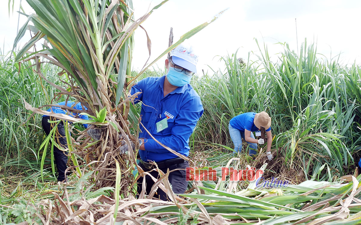 Đoàn viên, thanh niên xã Tân Tiến, huyện Bù Đốp nhận cắt cỏ cho dê giúp các hộ chăn nuôi đang thực hiện cách ly tại nhà
