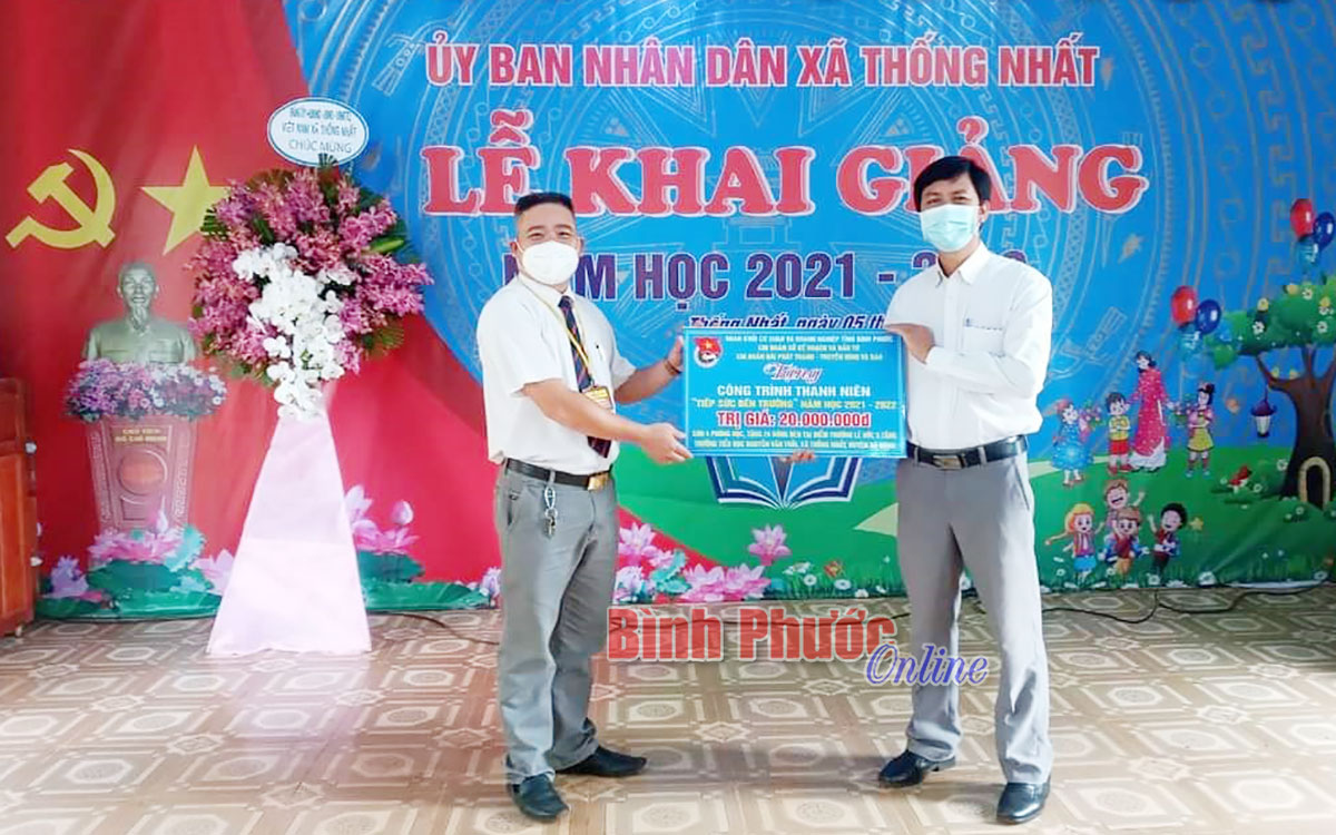 Vì tình hình dịch bệnh, đoàn đã nhờ đại diện địa phương trao bảng tượng trưng công trình thanh niên cho nhà trường tại lễ khai giảng năm học 2021-2022