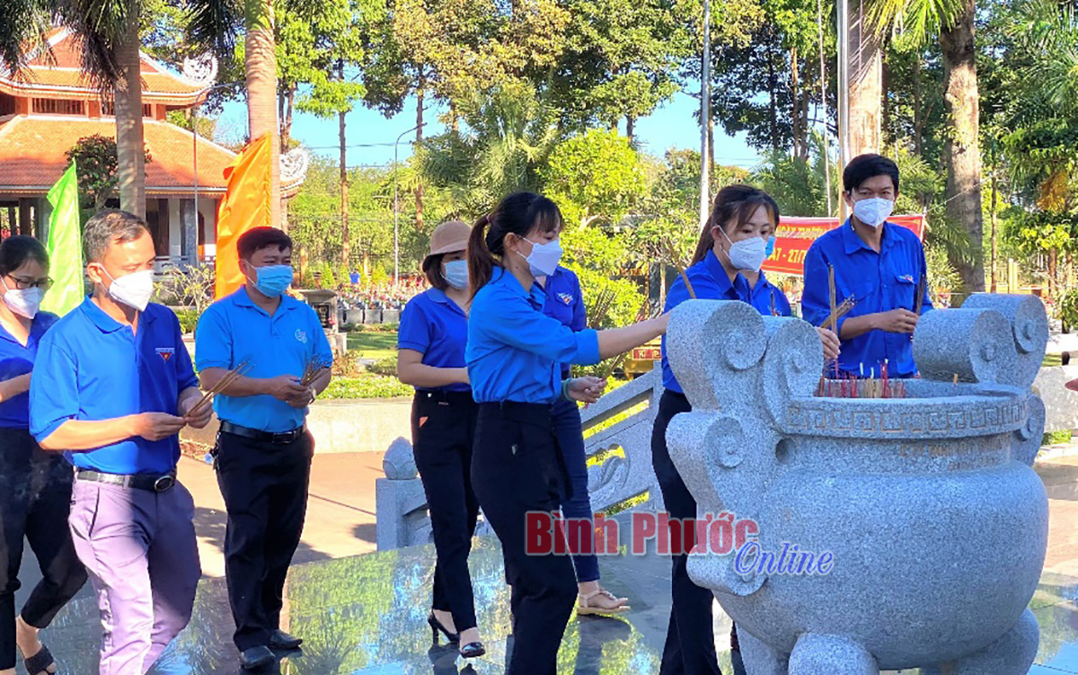 Đoàn viên thanh niên dâng hương tại Nghĩa trang liệt sĩ thị xã
