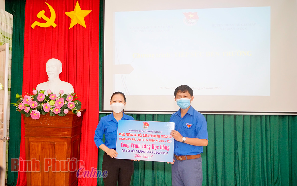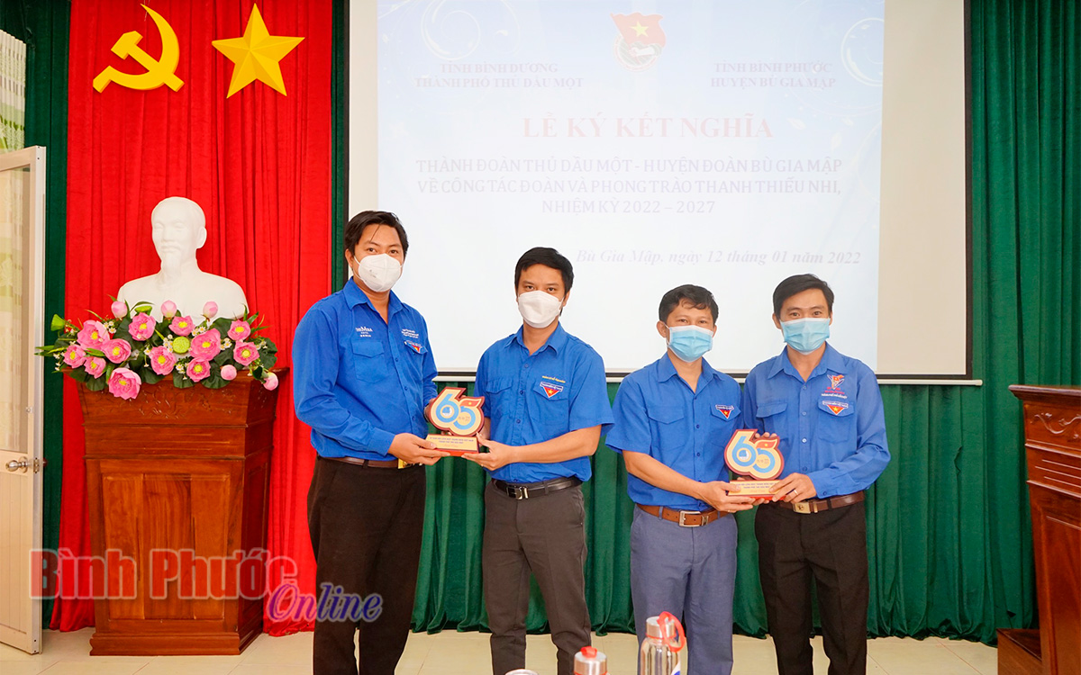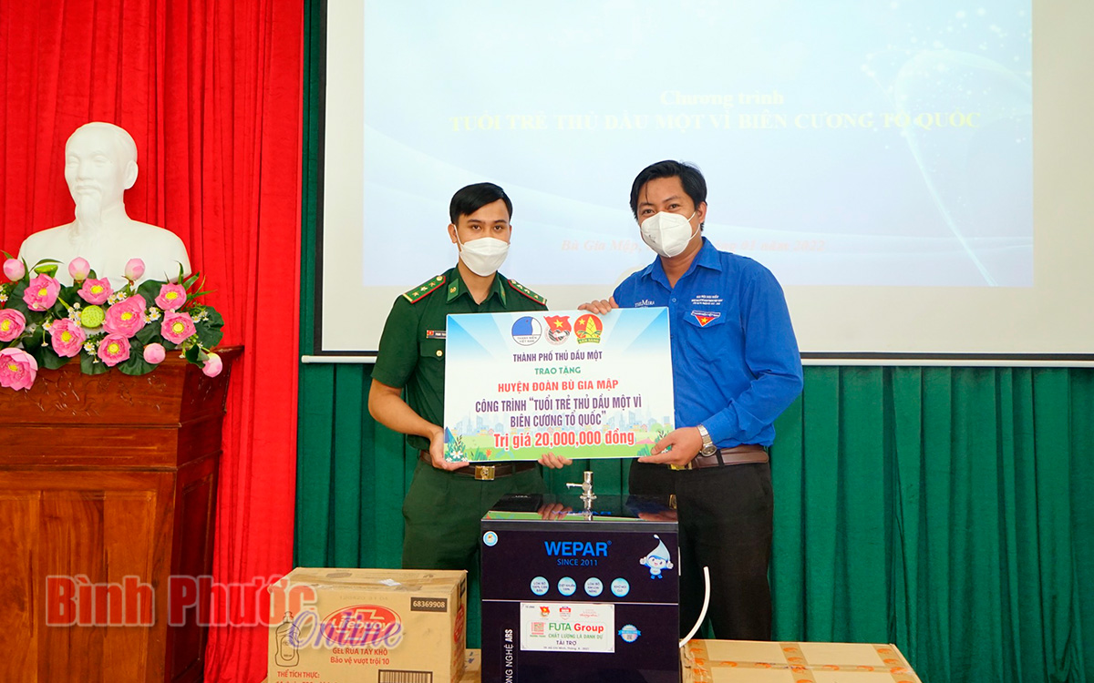 Nằm trong nội dung ký kết chương trình, dịp này, Thành đoàn Thủ Dầu Một, tỉnh Bình Dương đã trao tặng 4 công trình với các chủ đề: “Mùa xuân cho em”, “Xây dựng nông thôn mới”, “Vì biên cương Tổ quốc”, “Tiếp sức em đến trường” tổng trị giá 123 triệu đồng. Sau khi tiếp nhận, Huyện đoàn Bù Gia Mập sẽ tổ chức trao đến nhân dân, học sinh khó khăn trên địa bàn.