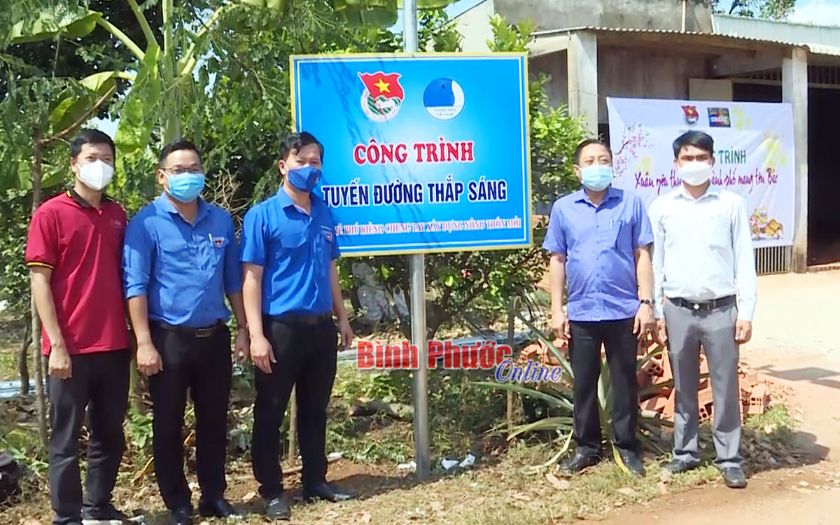 Công trình thắp sáng đường quê bằng năng lượng mặt trời với chiều dài 3,8km, trị giá công trình 60 triệu đồng được bàn giao cho thôn 8, xã Long Bình. Trong đó, Tỉnh đoàn và Huyện đoàn hỗ trợ 20 triệu đồng, số tiền còn lại vận động nhân dân đóng góp.