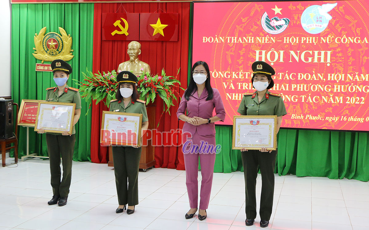 Tại hội nghị, Tỉnh đoàn đã tặng bằng khen cho 1 tập thể, 1 cá nhân có thành tích xuất sắc trong công tác đoàn và phong trào thanh thiếu nhi năm 2021. Hội liên hiệp phụ nữ tỉnh tặng bằng khen cho 3 tập thể và 3 cá nhân có thành tích xuất sắc trong thực hiện phong trào thi đua nhiệm kỳ 2016-2021, công tác hội và phong trào hội năm 2021. Đoàn Thanh niên Công an tỉnh tặng giấy khen cho 9 cá nhân có thành tích trong các phong trào thi đua của Đoàn năm 2021. Hội phụ nữ Công an tỉnh tặng giấy khen cho 9 cá nhân có thành tích xuất sắc trong công tác hội năm 2021.
