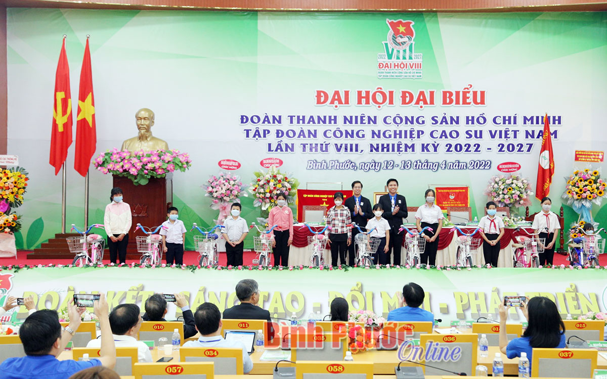 Nhân dịp tổ chức tại tỉnh Bình Phước, đại hội dành tặng 10 xe đạp cho học sinh học giỏi vượt khó tại địa phương