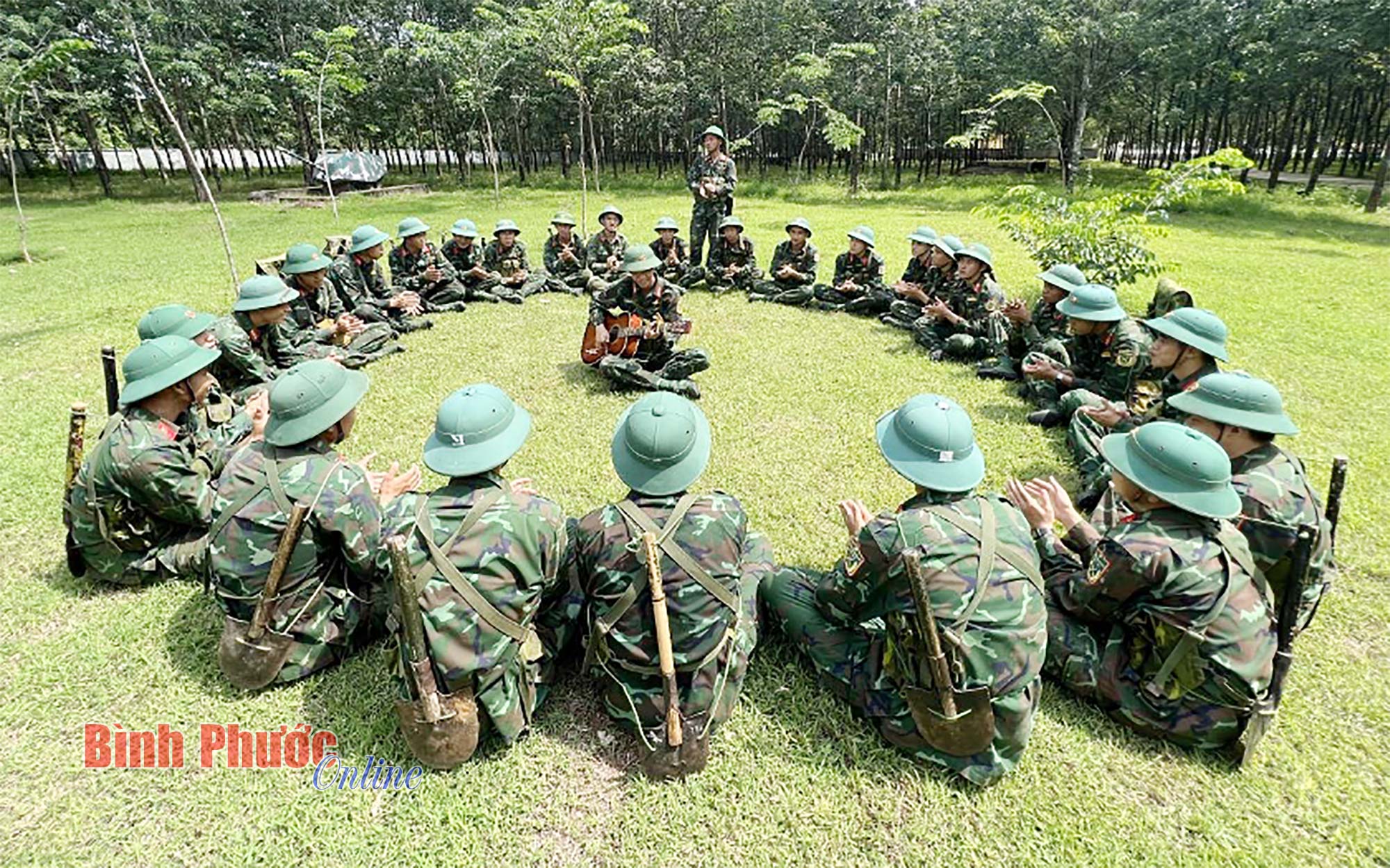 Sinh hoạt văn nghệ của các chiến sĩ ở thao trường huấn luyện