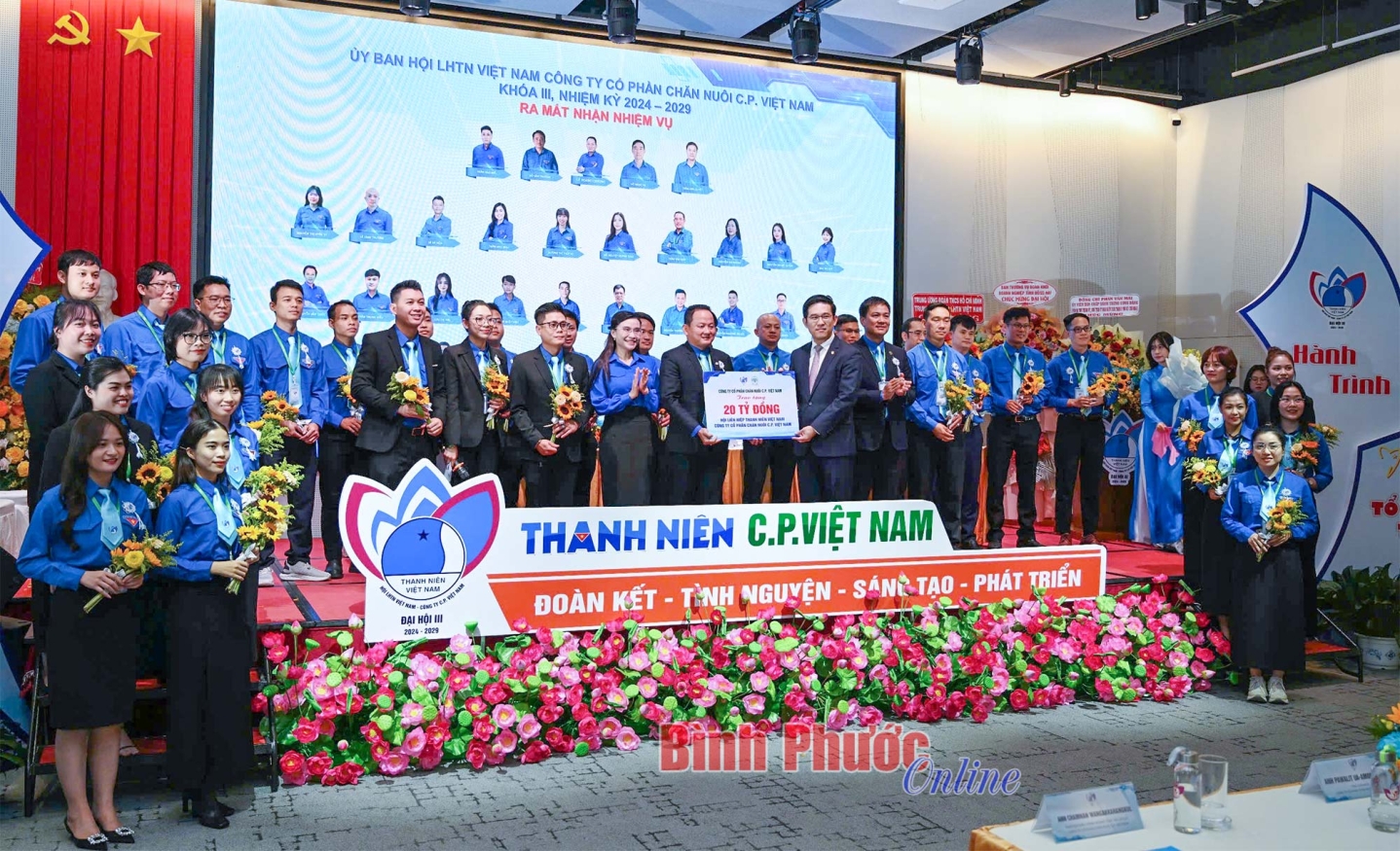 Tại đại hội, đại diện Ban lãnh đạo công ty đã trao biểu trưng trích 20 tỷ đồng cho Hội LHTN Việt Nam Công ty Cổ phần C.P. Việt Nam thực hiện 12 chỉ tiêu trọng tâm đã đề ra. Qua đó, khẳng định sự tin tưởng, đồng hành cùng thanh niên C.P Việt Nam xây dựng một Việt Nam hùng cường, phát triển.