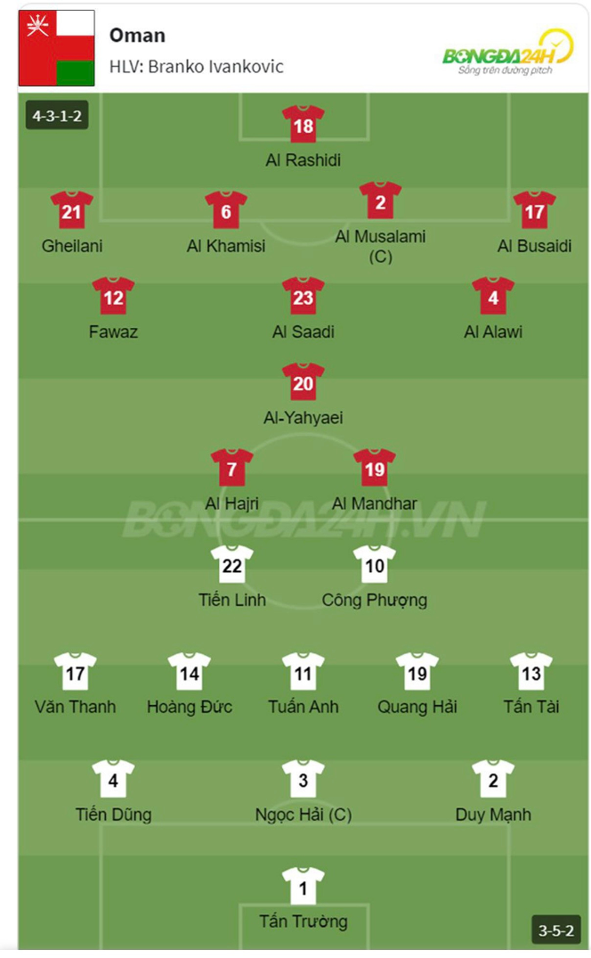 Đội hình dự kiến tuyển Việt Nam - Oman, lúc 23 giờ tối nay (12-10). Nguồn: Bóng đá 24 giờ