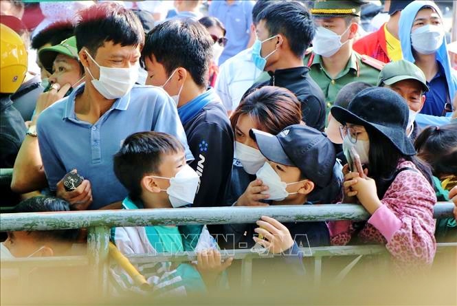 Người dân xếp hàng mua vé xem các trận bóng đá có đội tuyển U23 Việt Nam thi đấu tại Phú Thọ. Ảnh: TTXVN