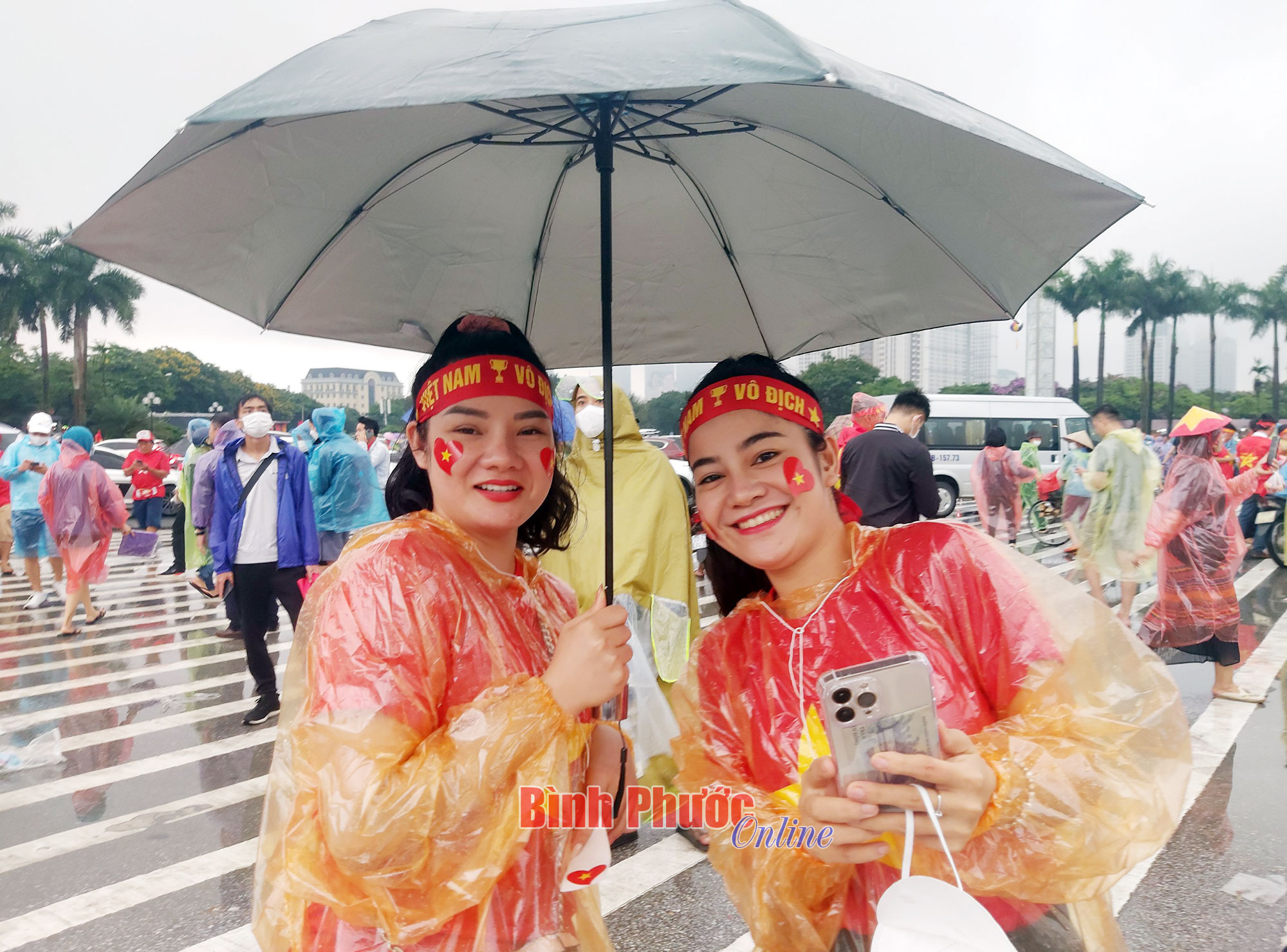 Dù 19 giờ trận tranh HCV giữa U23 Việt Nam - U23 Thái Lan mới diễn ra nhưng trước đó từ rất sớm, các cổ động viên Việt Nam đã đội mưa kéo về Sân vận động Mỹ Đình rất đông