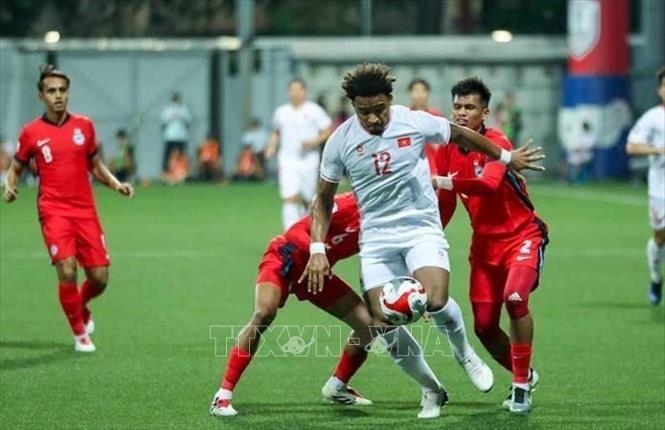 Trận đấu giữa Singapore và Việt Nam. Ảnh: Tất Đạt/TTXVN