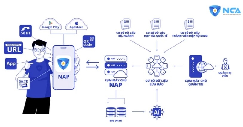 Theo đại diện đội ngũ phát triển phần mềm, cơ sở dữ liệu lừa đảo sẽ được kết nối, cập nhật từ các bộ, ngành trong nước như Bộ Công an, Bộ Thông tin và Truyền thông, Ngân hàng Nhà nước và các bên liên quan khác. Hệ thống cũng sẽ kết nối với cơ sở dữ liệu các công ty an ninh mạng là thành viên của Hiệp hội An ninh mạng quốc gia, cũng như các tổ chức chống lừa đảo quốc tế để phát huy sức mạnh tổng hợp.