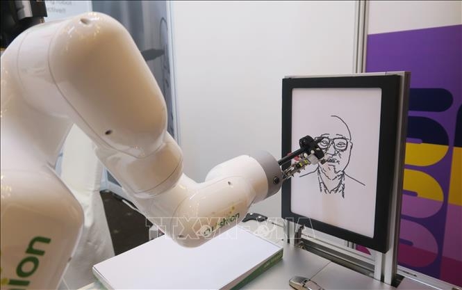 Robot sử dụng trí tuệ nhân tạo được giới thiệu tại Ngày hội Xúc tiến giao thương Việt - Hàn. Ảnh: Đinh Hằng/TTXVN