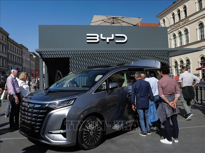 Mẫu xe điện của BYD tại Triển lãm ô tô quốc tế ở Munich, Đức ngày 8-9-2023. Ảnh: THX/TTXVN
