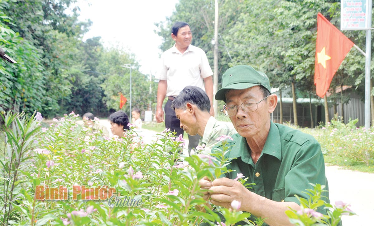 Ông Trương Thanh Hùng, cựu chiến binh ấp 1, xã Đồng Tâm cho biết: Ấp có 420 hộ với trên 2.000 người, trong đó 30% số dân là đồng bào dân tộc thiểu số. Thực hiện chương trình mục tiêu quốc gia xây dựng nông thôn mới, ấp đã xây dựng được trên 5km đường bê tông xi măng, trong đó người dân đóng góp hơn 500 triệu đồng. Sau khi các tuyến đường hoàn thành, Ban điều hành ấp giao Chi hội cựu chiến binh vận động người dân trồng hoa hai bên đường. Đến nay, những khóm hoa đang đua nhau khoe sắc, thay thế những bụi cỏ dại mọc um tùm trước đây.