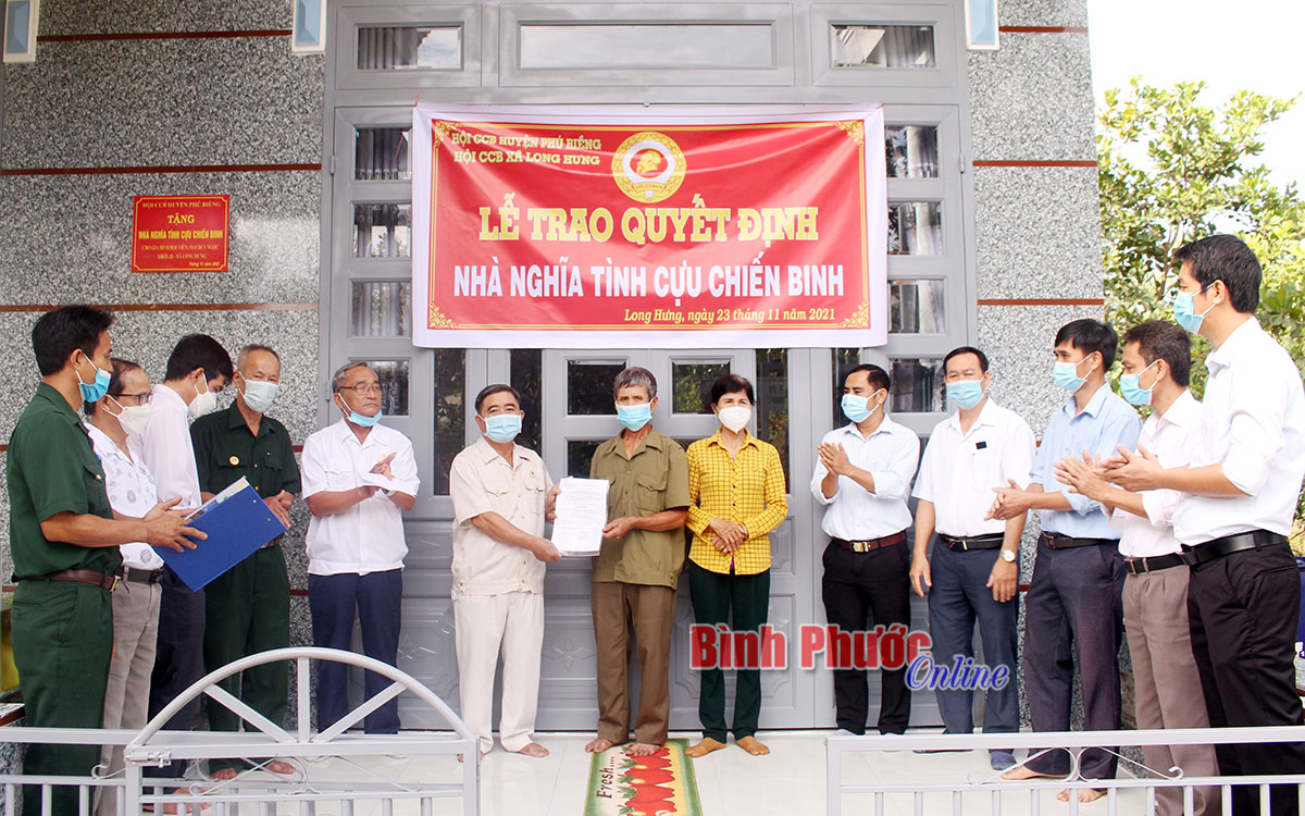 Hội CCB huyện Phú Riềng hiện có 2.817 hội viên, sinh hoạt tại 81 chi hội. Với quyết tâm không để hội viên nghèo phải ở trong căn nhà tạm dột nát, Hội CCB huyện phát động phong trào tới toàn thể cán bộ, hội viên trên địa bàn huyện ủng hộ xây tặng nhà “Nghĩa tình cựu chiến binh”. Theo đó, mỗi hội viên đóng góp 10 ngàn đồng/năm để chung tay xóa nhà tạm dột nát cho CCB. Từ năm 2017 đến nay, các cấp hội CCB trong huyện đã xây tặng 21 căn nhà, sửa chữa 6 căn cho gia đình hội viên hoàn cảnh khó khăn về nhà ở, với tổng trị giá 1,9 tỷ đồng. Đến nay, Hội CCB huyện đã cơ bản xóa hết nhà tạm. Ông Đỗ Hồng Quân, Chủ tịch Hội CCB huyện Phú Riềng cho biết: Những ngôi nhà “Nghĩa tình cựu chiến binh” trao tặng đã góp phần động viên, khích lệ tinh thần, ý chí để các hội viên CCB nỗ lực vươn lên, tiếp tục cống hiến sức lực, trí tuệ cho gia đình, xã hội.