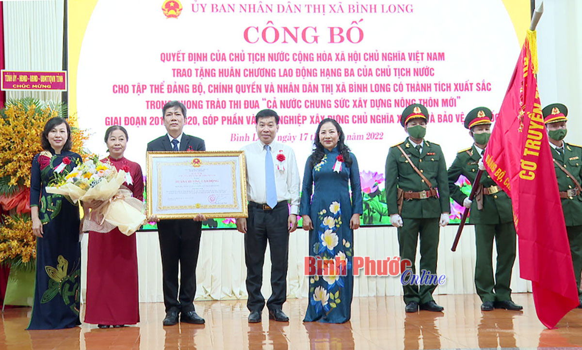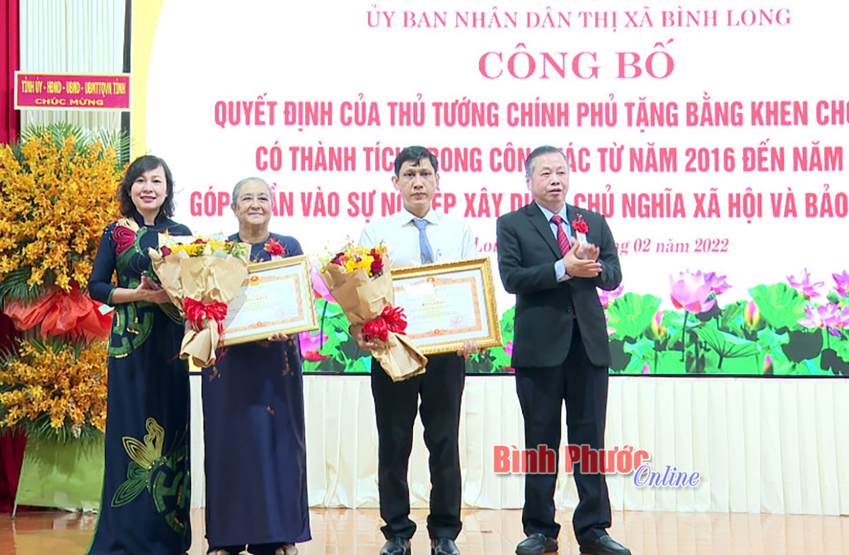 Dịp này, thị xã Bình Long cũng đón nhận Huân chương Lao động hạng Ba của Chủ tịch nước do có thành tích xuất sắc trong phong trào thi đua “Cả nước chung sức xây dựng nông thôn mới” giai đoạn 2016 - 2020, góp phần vào sự nghiệp xây dựng chủ nghĩa xã hội và bảo vệ Tổ quốc. Ngoài ra, nhiều cá nhân, tập thể có thành tích xuất sắc khác cũng vinh dự được nhận bằng khen của Thủ tướng Chính phủ, Chủ tịch UBND tỉnh.