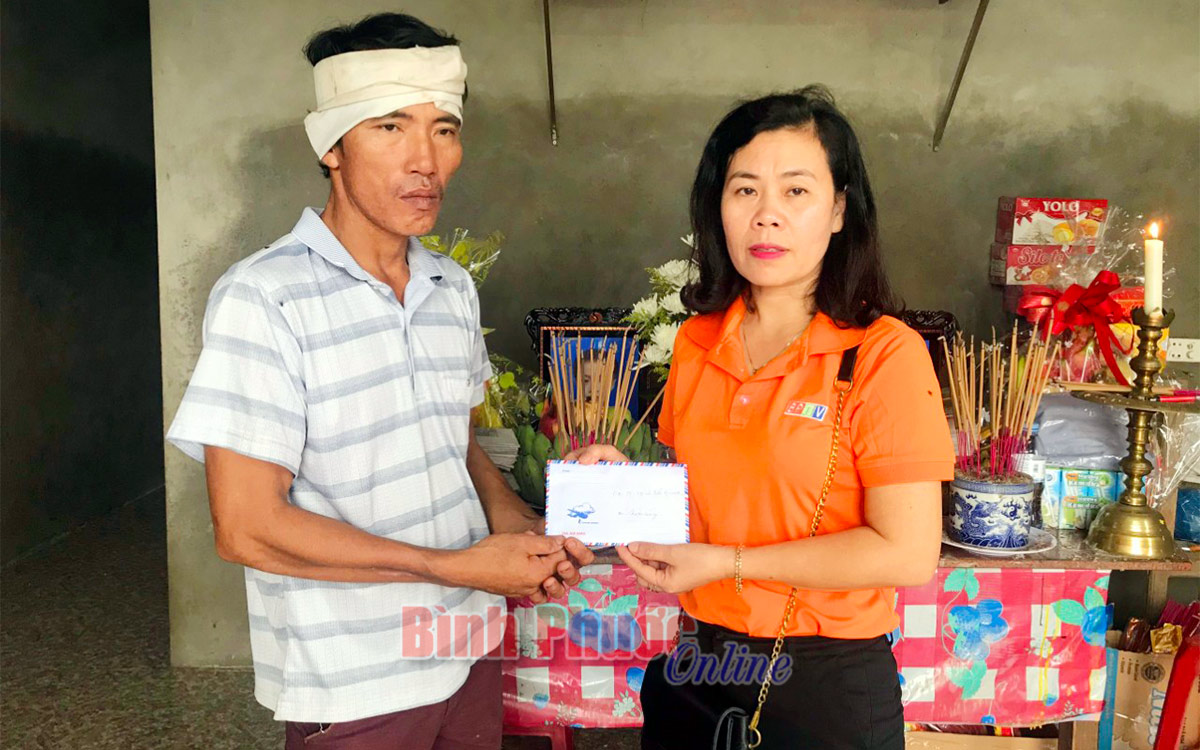 Chia sẻ với gia đình anh Đức, đoàn trao 1,5 triệu đồng để động viên gia đình anh vượt qua đau thương mà mất mát quá lớn này.