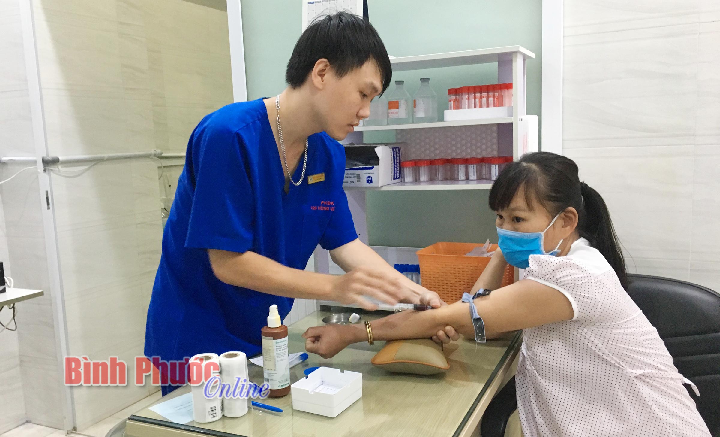 Thai phụ lấy máu để làm các xét nghiệm sàng lọc trước sinh tại Phòng khám 123 Hùng Vương, TP. Đồng Xoài
