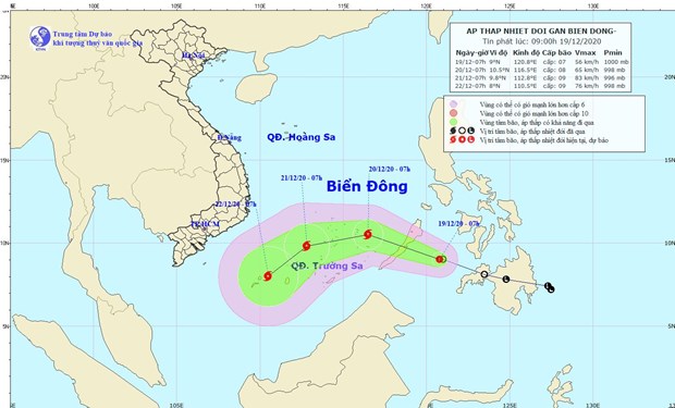 Theo Trung tâm Dự báo Khí tượng Thủy văn Quốc gia, hồi 1 giờ ngày 19-12, vị trí tâm áp thấp nhiệt đới ở vào khoảng 9,0 độ Vĩ Bắc; 121,0 độ Kinh Đông, trên khu vực vùng biển phía Tây miền Nam Philippines.
