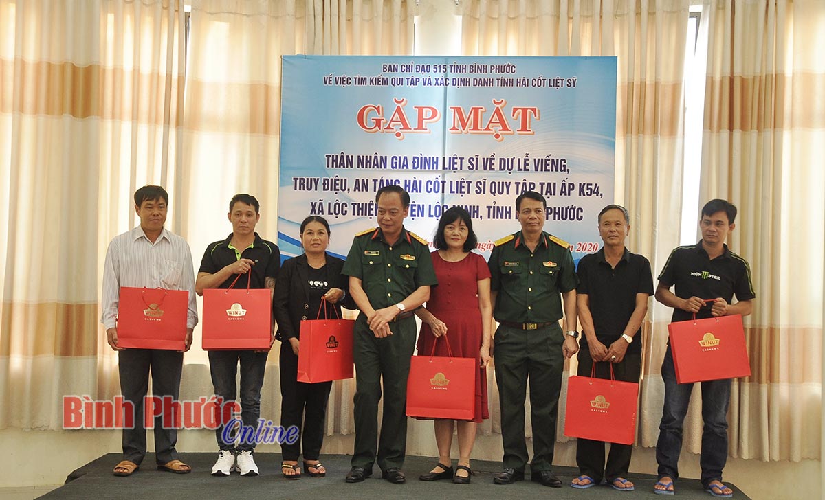 Dự buổi gặp mặt có Đại tá Nguyễn Công Anh, Phó chủ nhiệm chính trị, Thường trực Ban chỉ đạo 515 Quân khu 7; Đại tá Vũ Tiến Điền, Chính ủy Bộ Chỉ huy quân sự tỉnh, Phó ban Thường trực Ban chỉ đạo 515 tỉnh; lãnh đạo Ban Dân vận Tỉnh ủy, Ủy ban MTTQ Việt Nam tỉnh, Sở Lao động - Thương binh và Xã hội (LĐ-TB&XH) và thân nhân của 15 liệt sĩ.
