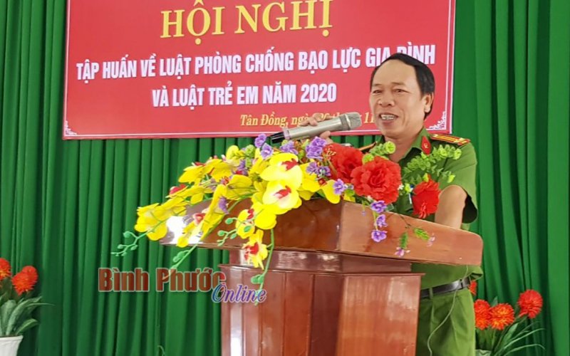 Tập huấn về phòng chống bạo lực gia đình và luật trẻ em năm 2020BPO - Chiều nay 26-11, UBND phường Tân Đồng phối hợp công an thành phố Đồng Xoài tổ chức hội nghị tập huấn về phòng chống bạo lực gia đình và triển khai luật trẻ em cho gần 100 hội viên phụ nữ phường và học sinh trường THCS Tân Đồng.