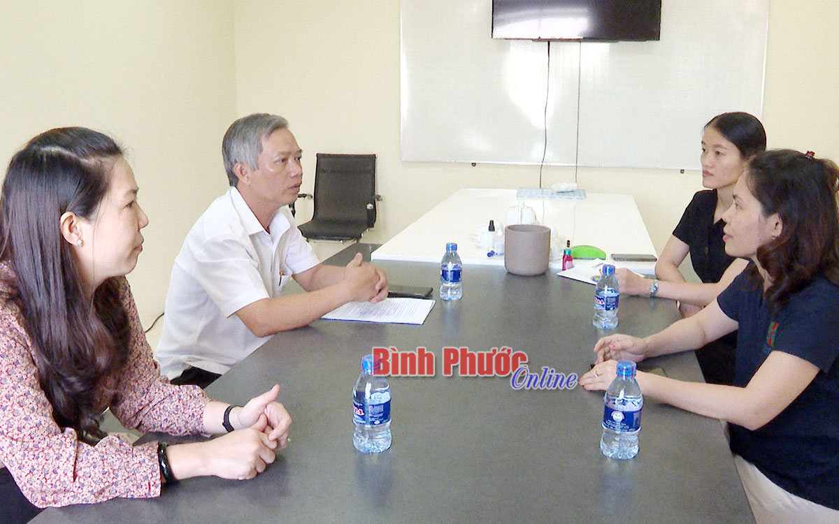 Chủ tịch LĐLĐ huyện Lê Thành Hòa làm việc với Ban giám đốc Công ty An Bình, xã Minh Long