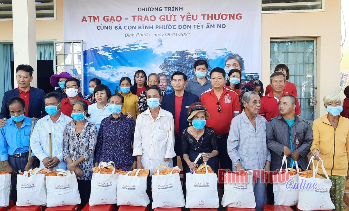 Chương trình “ATM gạo - Trao gửi yêu thương” cũng sẽ diễn ra tại hai huyện Lộc Ninh và Bù Đăng vào ngày 12-1. Dự kiến mỗi địa phương sẽ cấp phát miễn phí 5 tấn gạo cho hộ nghèo, hộ cận nghèo và các đối tượng yếu thế trong xã hội.