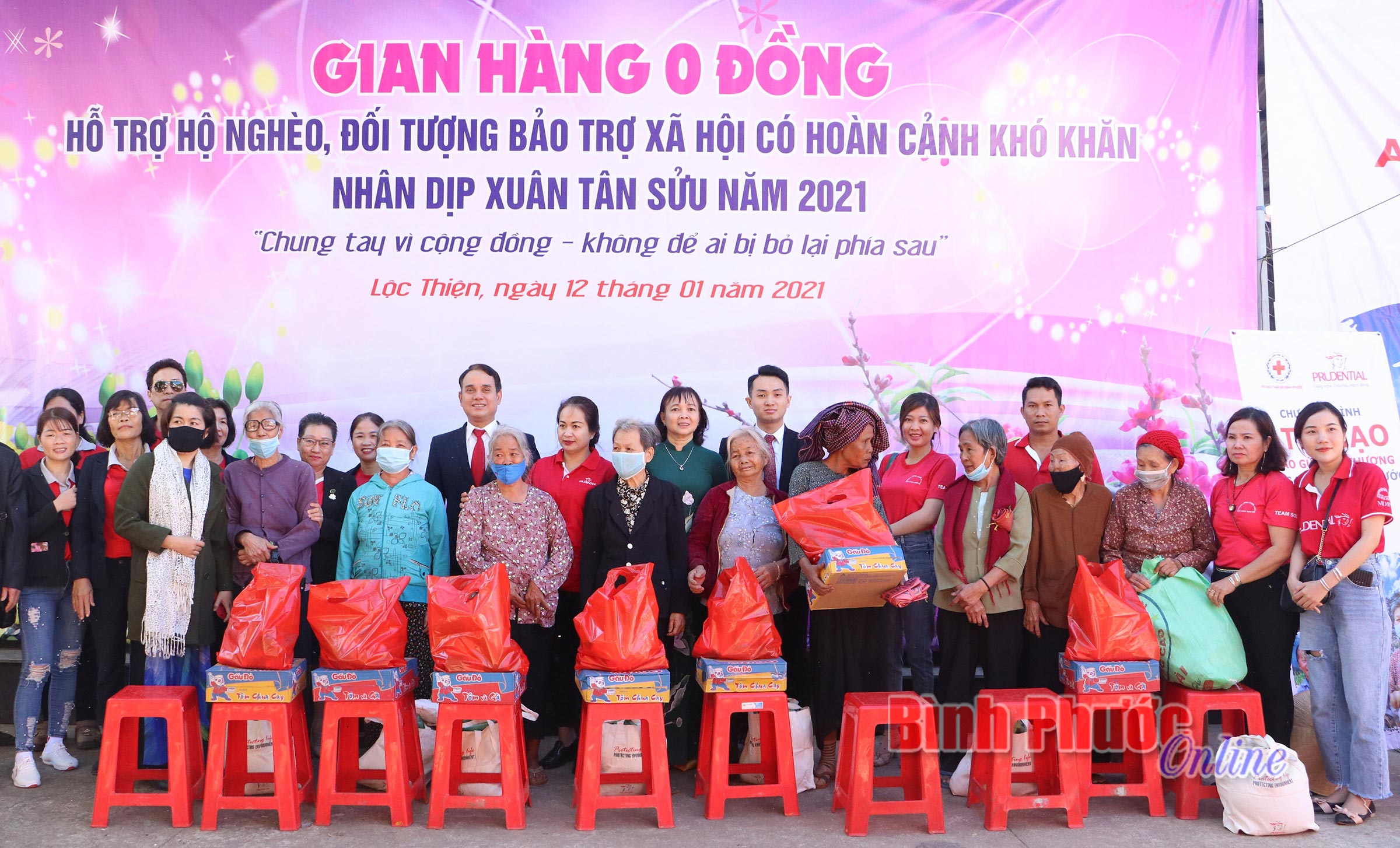 Sáng cùng ngày, Ban vận động quần chúng liên ngành, Ủy ban MTTQ huyện và Hội Chữ thập đỏ huyện Lộc Ninh đã khai trương Gian hàng 0 đồng nhằm hỗ trợ hộ nghèo, đối tượng bảo trợ xã hội có hoàn cảnh khó khăn nhân dịp xuân Tân Sửu 2021 “Chung tay vì cộng đồng - không để ai bị bỏ lại phía sau”.
