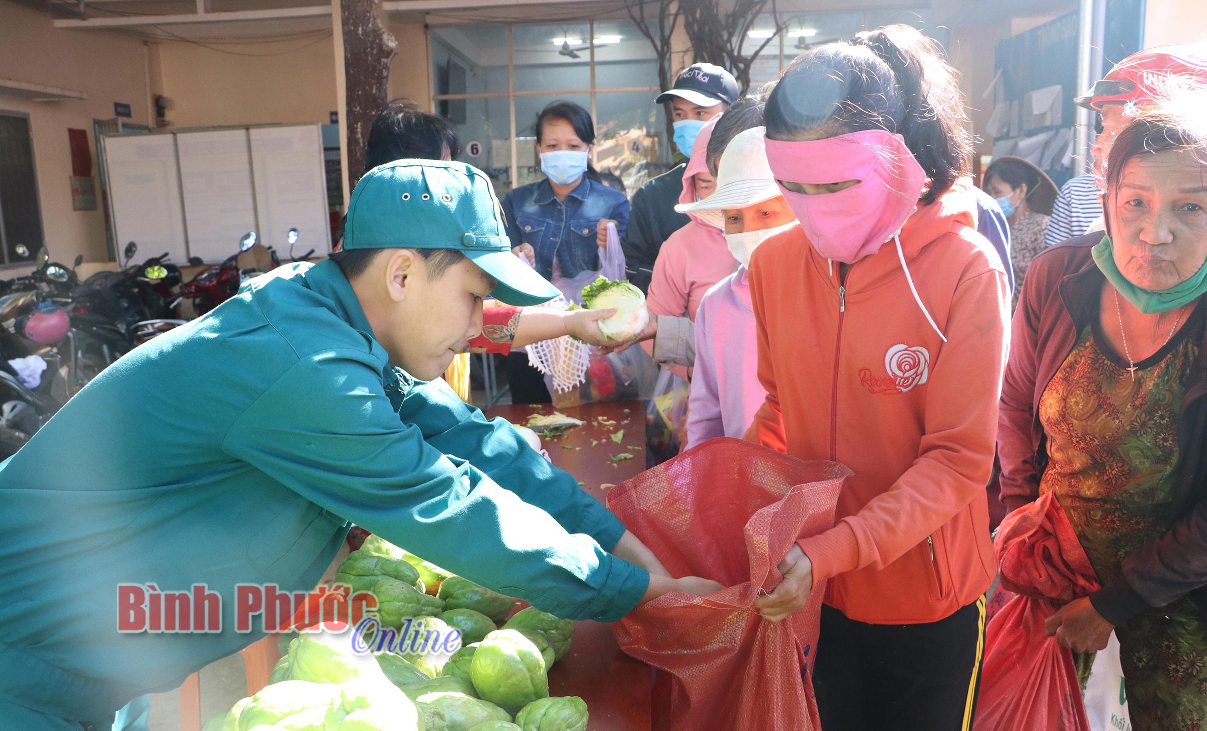 Bà con xã Lộc Thiện, huyện Lộc Ninh tự chọn rau củ quả tại gian hàng 0 đồng