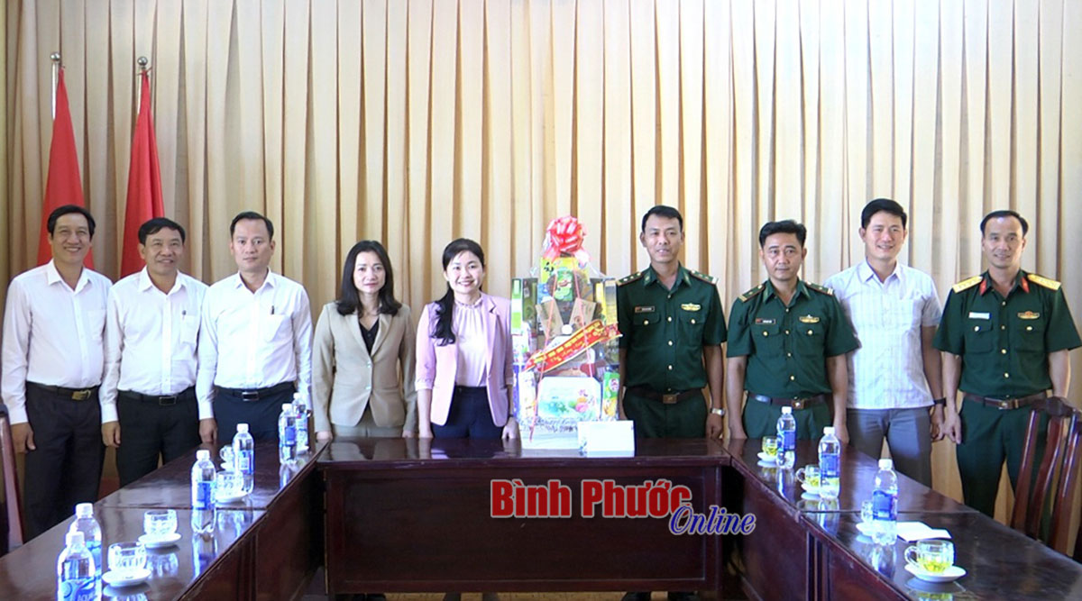 Bí thư Thành ủy Đồng Xoài Tôn Ngọc Hạnh và Chủ tịch UBND thành phố Nguyễn Minh Bình cùng lãnh đạo thành phố chúc tết tặng quà cán bộ chiến sĩ Đồn biên phòng Lộc An