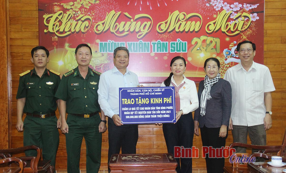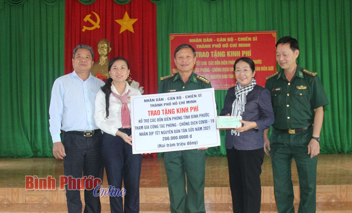 Đoàn đã thăm hỏi, động viên và trao tặng 50 phần quà cho hộ nghèo xã Phú Văn, huyện Bù Gia Mập, mỗi phần quà gồm bánh kẹo tết và tiền mặt trị giá 1 triệu đồng. Đoàn cũng trao tặng nhiều phần quà, tổng trị giá 140 triệu đồng cho đội ngũ y, bác sĩ và bệnh nhân đang điều trị tại Bệnh viện Nhân Ái (Bệnh viện trực thuộc Sở Lao động - Thương binh và Xã hội TP. Hồ Chí Minh). Qua đó, kịp thời động viên đoàn y, bác sĩ tại bệnh viện an tâm tư tưởng hoàn thành tốt nhiệm vụ; các bệnh nhân chuyên tâm điều trị bệnh.