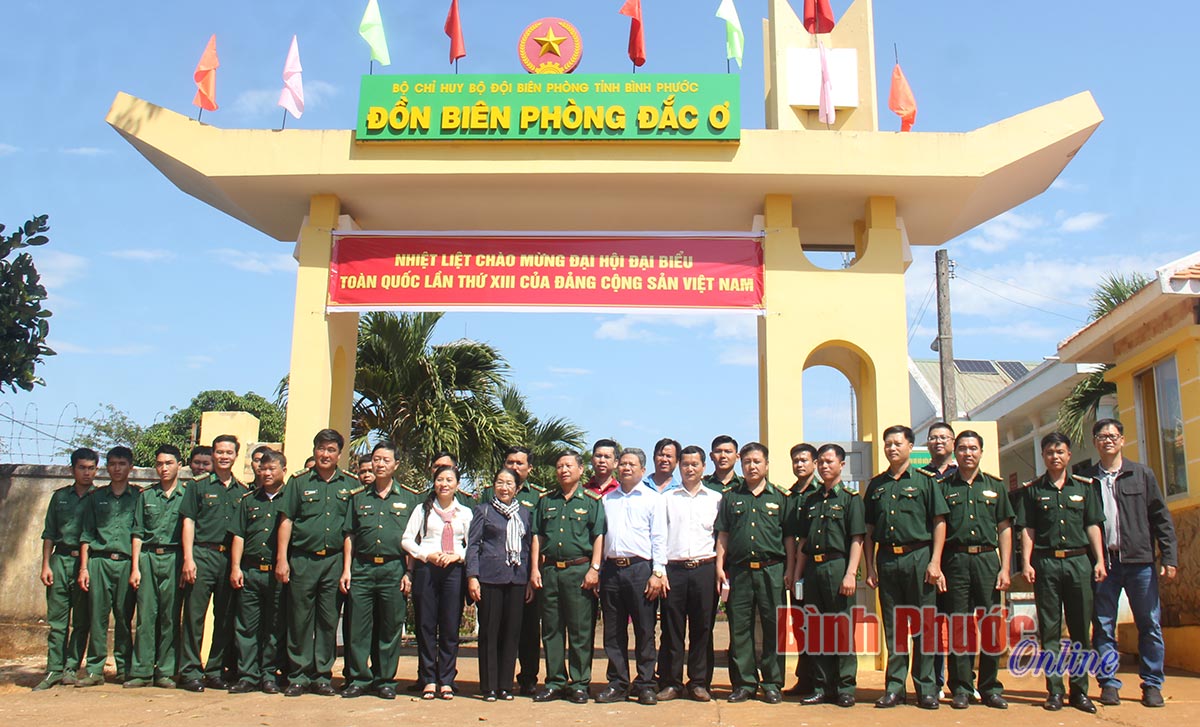 Đoàn công tác Ủy ban MTTQVN TP. Hồ Chí Minh chụp hình lưu niệm cùng cán bộ, chiến sĩ các đồn biên phòng tuyến Bù Gia Mập