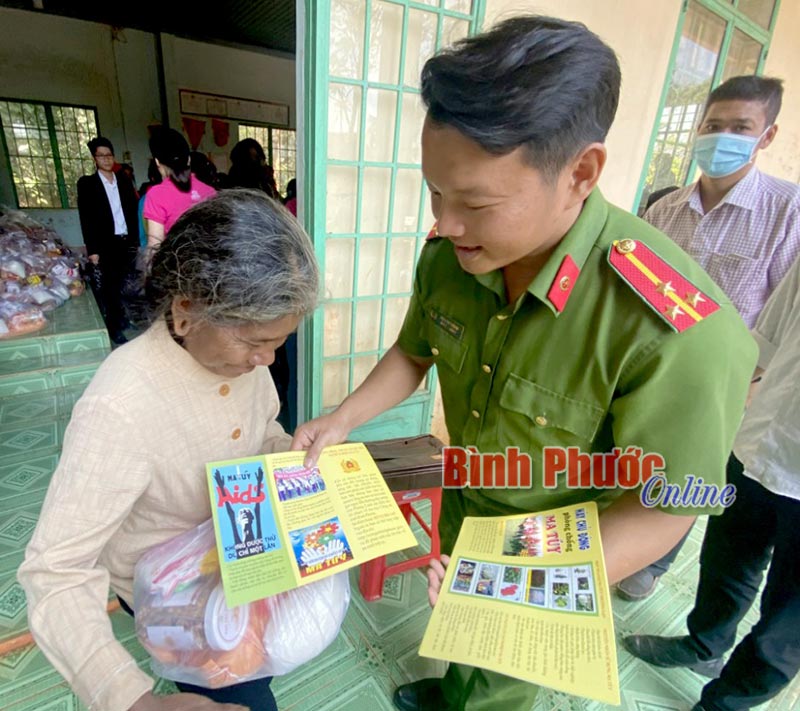 Đồng thời, Đoàn thanh niên khối Cảnh sát, Công an tỉnh đã lồng ghép tuyên truyền pháp luật và phát tờ rơi cho hơn 150 người dân trên địa bàn xã Phú Văn.