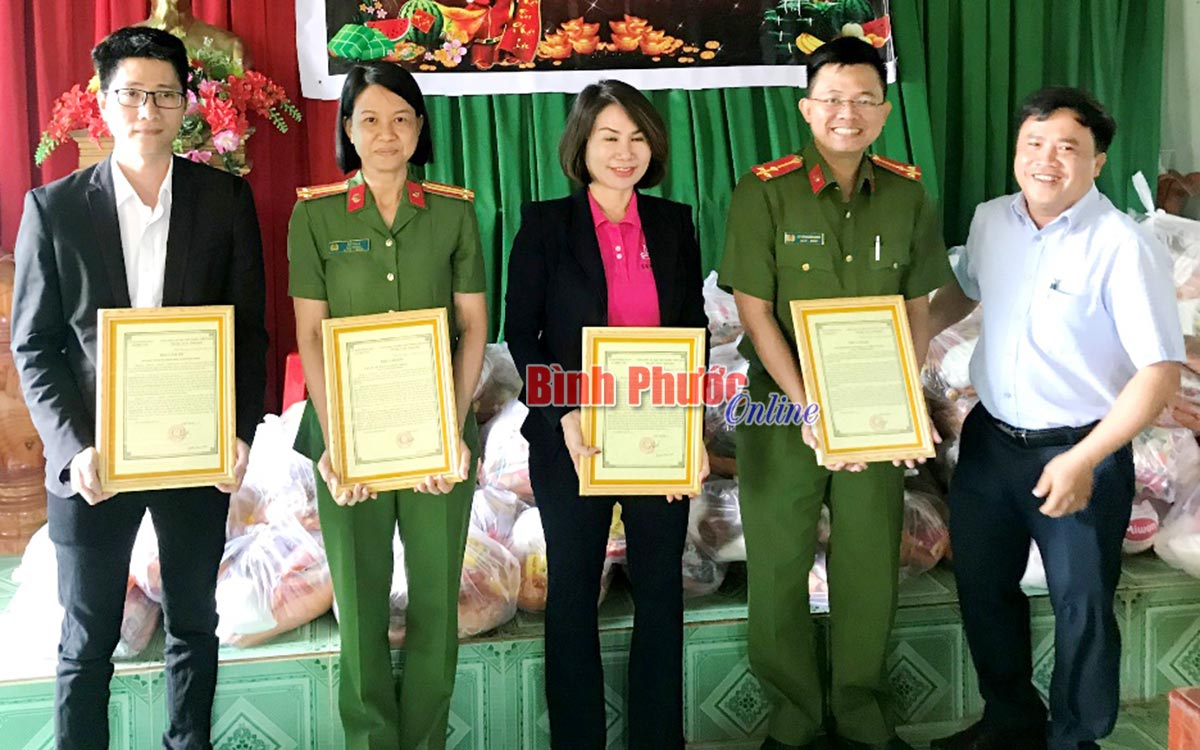 UBND xã Phú Văn trao thư cảm ơn Hội phụ nữ - Đoàn thanh niên khối Cảnh sát, Công an tỉnh và nhà tài trợ
