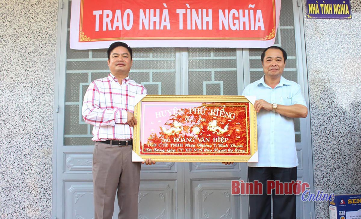 Đại diện Công ty TNHH TM - DV-XNK Hiệp Thương trao nhà tình nghĩa tại huyện Phú Riềng