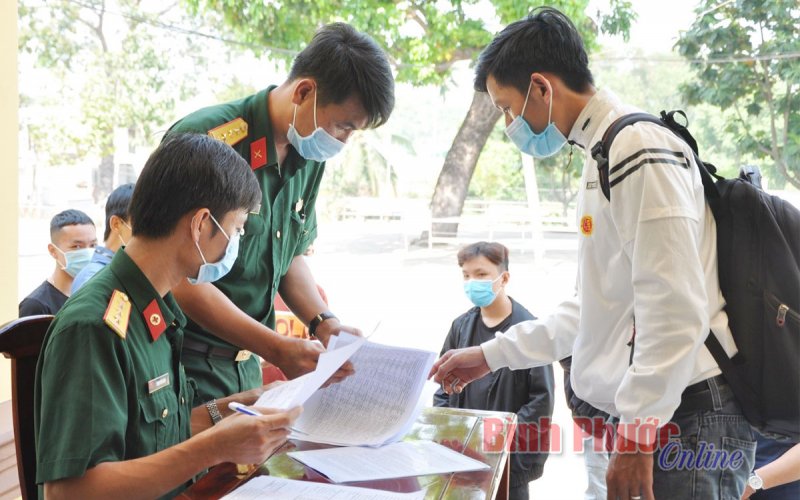 Đồng Xoài lấy mẫu xét nghiệm SARS-CoV-2 cho công dân chuẩn bị nhập ngũBPO - Chiều nay 23-2, Hội đồng Nghĩa vụ quân sự thành phố Đồng Xoài lấy mẫu xét nghiệm SARS-CoV-2 cho 108 công dân chính thức và 4 dự phòng chuẩn bị lên đường nhập ngũ.
