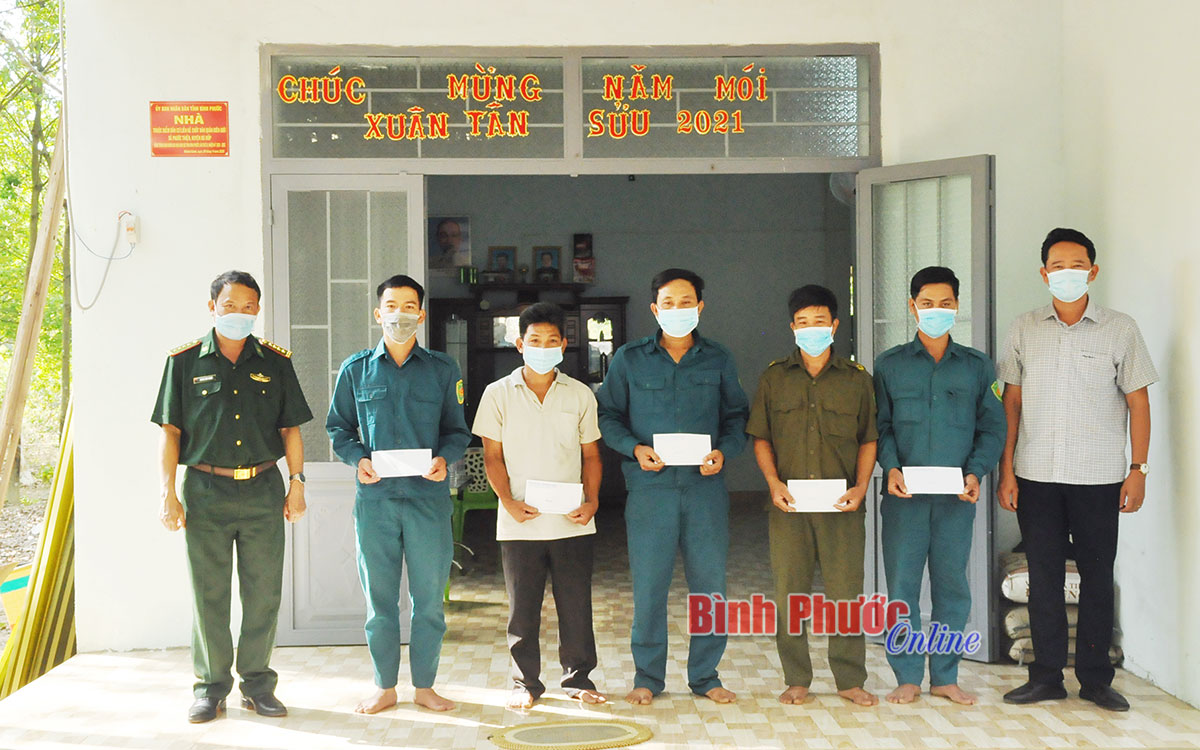 Đoàn tặng quà cho các hộ dân quân nhà liền kề chốt dân quân biên giới xã Phước Thiện